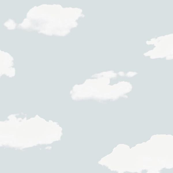 | Màu sắc chi tiết | Giấy dán tường màu xanh dương pastel, trắng mây |