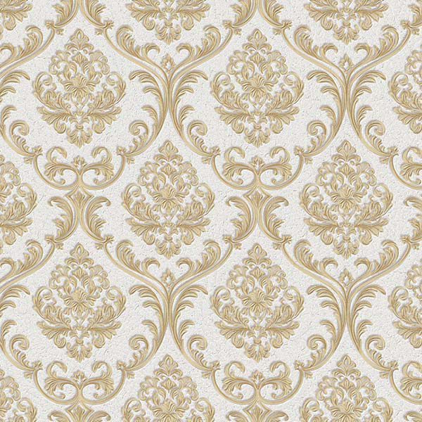 Điểm nhấn chính của sản phẩm nằm ở kiểu vân cổ điển (damask) đối xứng, lấy cảm hứng từ những họa tiết hoàng gia châu Âu. Các đường nét uốn lượn mềm mại của lá cây acanthus và cụm hoa cách điệu được thể hiện một cách tinh xảo. Đặc biệt, bề mặt giấy dán tường hoa văn này được dập nổi rõ rệt, tạo nên hiệu ứng thị giác 3D sống động và tăng chiều sâu cho không gian. Khi ánh sáng chiếu vào, các chi tiết nổi đổ bóng lên bề mặt, làm cho bức tường trở thành một tác phẩm nghệ thuật thực thụ, khác biệt hoàn toàn so với các loại giấy dán tường phẳng thông thường. Hiệu ứng này cũng giúp sản phẩm được xem như một dạng giấy dán tường 3D độc đáo.