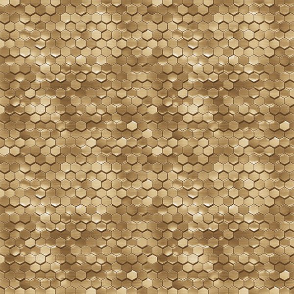 Điểm nhấn ấn tượng nhất của sản phẩm chính là họa tiết hình học dạng tổ ong (lục giác) được thể hiện với hiệu ứng giấy dán tường 3D vô cùng tinh xảo. Các khối lục giác không được in phẳng mà được dập nổi ở những cao độ khác nhau, tạo cảm giác như một bức phù điêu kim loại được chạm khắc công phu. Sự tương phản giữa các mảng bắt sáng và vùng đổ bóng tạo nên một bề mặt sống động, thay đổi diện mạo liên tục theo góc nhìn và cường độ ánh sáng. Đây là một lựa chọn phá cách, vượt trội hơn hẳn các mẫu giấy dán tường hoa văn truyền thống, mang đến một vẻ đẹp mạnh mẽ và đầy cuốn hút.