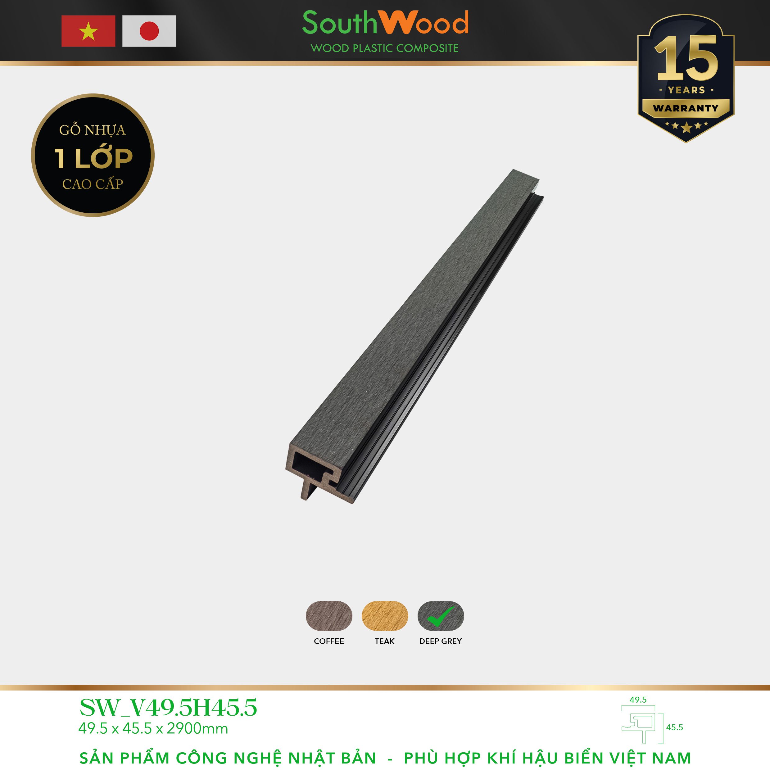 15 đánh giá cho Gỗ Nhựa SouthWood V49.5H45.5 Deep Grey