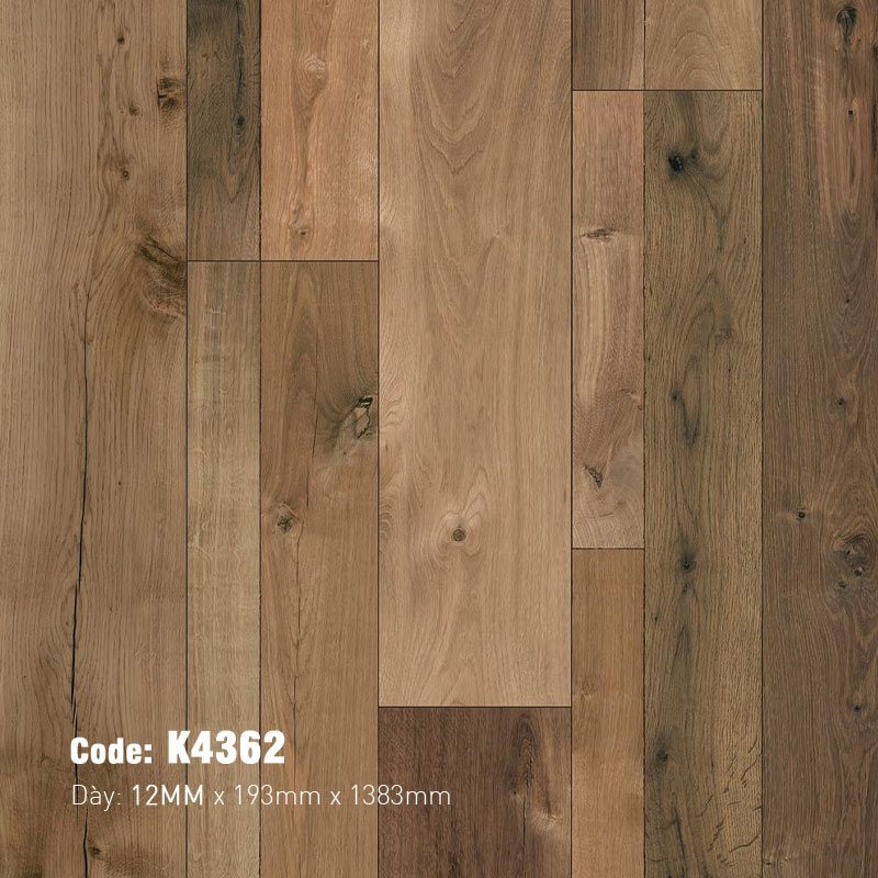 Bề mặt ván sàn tái hiện chân thực hệ vân của gỗ sồi tự nhiên với những đường vân thẳng xen kẽ các cụm vân núi uốn lượn mềm mại. Điểm nhấn đặc biệt của thiết kế K4362 là sự xuất hiện của các mắt gỗ, vết nứt và chi tiết mô phỏng sự hao mòn của thời gian, mang lại vẻ đẹp mộc mạc, thô ráp đầy cá tính. Bề mặt có độ nhám nhẹ, bám theo từng đường vân, mang lại cảm giác chân thật khi tiếp xúc và góp phần tăng cường khả năng chống trơn trượt, đảm bảo an toàn cho mọi thành viên trong gia đình.