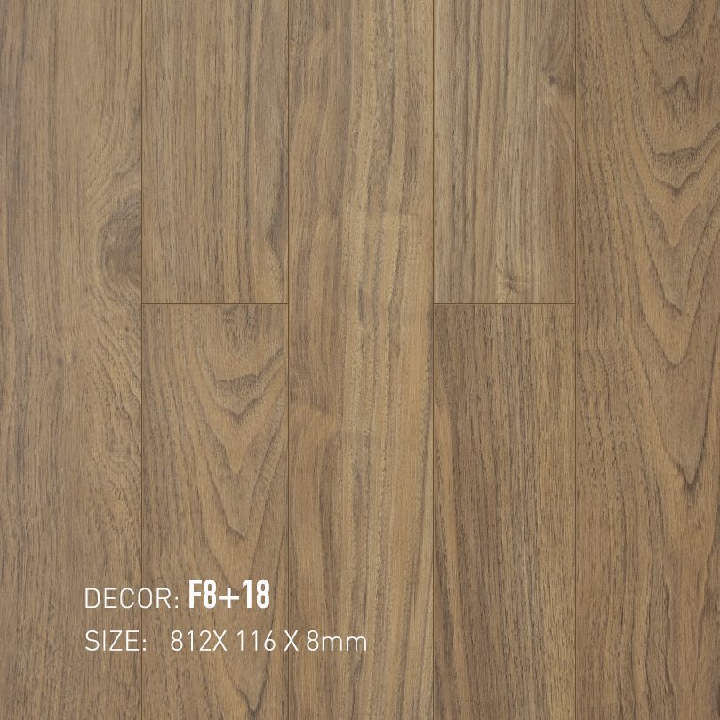 Sàn Gỗ Nam Việt F8+18, F8+18 là một lựa chọn hoàn hảo để kiến tạo không gian sống ấm cúng, sang trọng và gần gũi với thiên nhiên. Nằm trong bộ sưu tập sàn gỗ Nam Việt F8, sản phẩm này nổi bật với tông màu nâu vàng trung tính cùng hệ thống vân gỗ chân thực, mang đến vẻ đẹp tinh tế, bền vững theo thời gian cho mọi công trình nội thất. Đây là một trong những mẫu sàn gỗ Việt Nam chất lượng cao, đáp ứng nhu cầu thẩm mỹ đa dạng và các tiêu chuẩn khắt khe về độ bền.