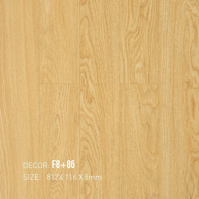 Sản phẩm F8+86 sở hữu tông màu vàng nâu sáng, mô phỏng sắc độ của gỗ sồi tự nhiên trong giai đoạn mới khai thác. Màu vàng chủ đạo mang đến cảm giác tươi tắn, ấm áp như ánh nắng ban mai, được tô điểm bởi những đường vân gỗ màu nâu nhạt, tạo ra sự chuyển tiếp màu sắc đầy tinh tế. Bề mặt có độ sáng cao, giúp không gian trở nên thoáng đãng và rộng rãi hơn, đặc biệt hiệu quả với những khu vực có diện tích khiêm tốn. Kiểu vân gỗ là sự kết hợp hài hòa giữa những đường vân thẳng và các cụm vân núi uyển chuyển, mang lại vẻ đẹp tự nhiên nhưng không kém phần hiện đại. Bề mặt mờ, phẳng mịn không chỉ mang lại cảm giác chân thực khi tiếp xúc mà còn đảm bảo khả năng chống trơn trượt tốt trong điều kiện khô ráo.
