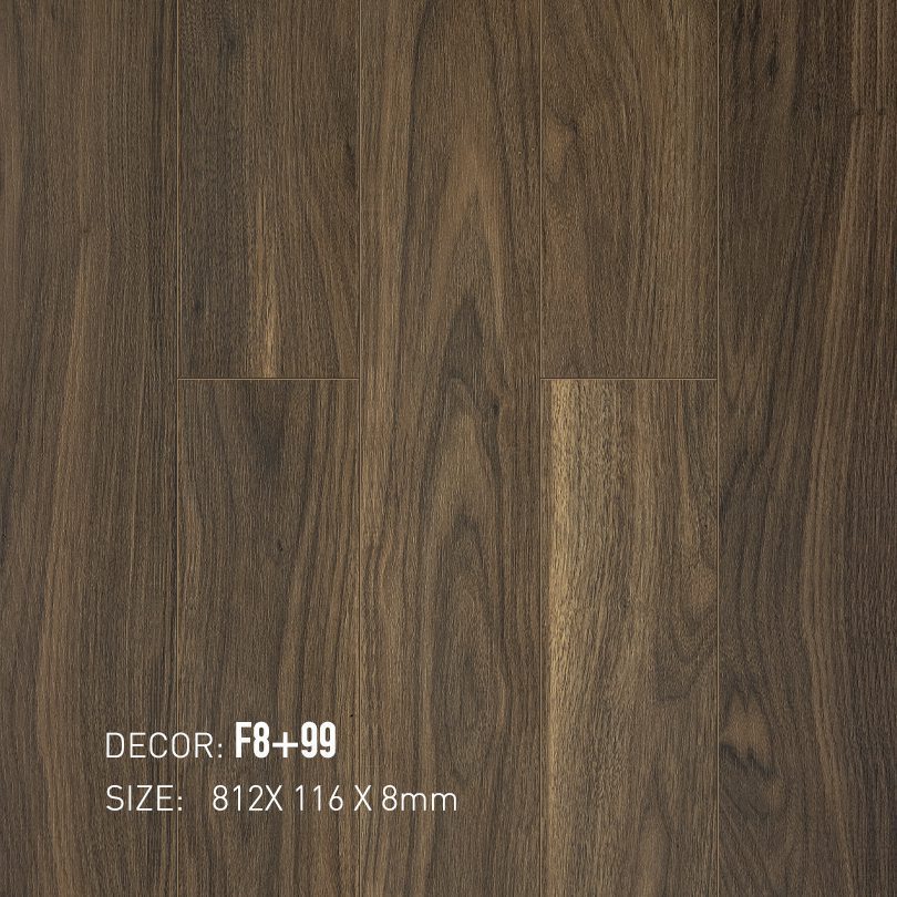 Thuộc bộ sưu tập sàn gỗ Nam Việt F8, mã màu F8+99 là sản phẩm của thương hiệu Hoàng Gia Nam Việt, được cấu tạo từ 5 lớp bền vững. Cấu trúc này bao gồm lớp phủ UV chống phai màu, lớp oxit nhôm chống mài mòn, lớp phim vân gỗ Châu Âu, lõi gỗ HDF mật độ cao và lớp đế cân bằng chống ẩm. Toàn bộ được kết nối bằng hệ thống hèm khóa Unilin tiên tiến, giúp việc lắp đặt dễ dàng và chắc chắn.