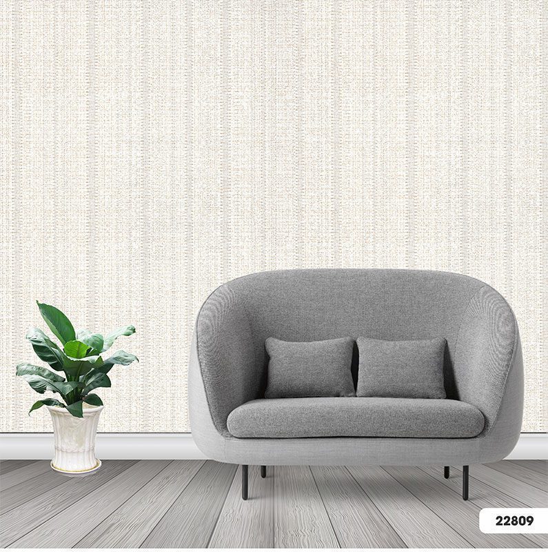 Tông màu Be kem (off-white) chủ đạo giúp không gian trở nên sáng sủa, thoáng đãng và tinh khôi, có khả năng khuếch tán ánh sáng hiệu quả để mở rộng không gian thị giác. Trên nền màu trang nhã đó là những đường sọc dọc được dệt từ sợi Ghi xám nhạt và Be đậm, tạo nên hiệu ứng chuyển sắc nhẹ nhàng đầy chiều sâu. Sự kết hợp của giấy dán tường màu be và giấy dán tường màu xám mang đến một vẻ ngoài sang trọng, không phô trương. Đặc biệt, kiểu giấy dán tường sọc dọc còn giúp “kéo dài” không gian theo chiều cao, tạo cảm giác trần nhà cao và thoáng hơn.